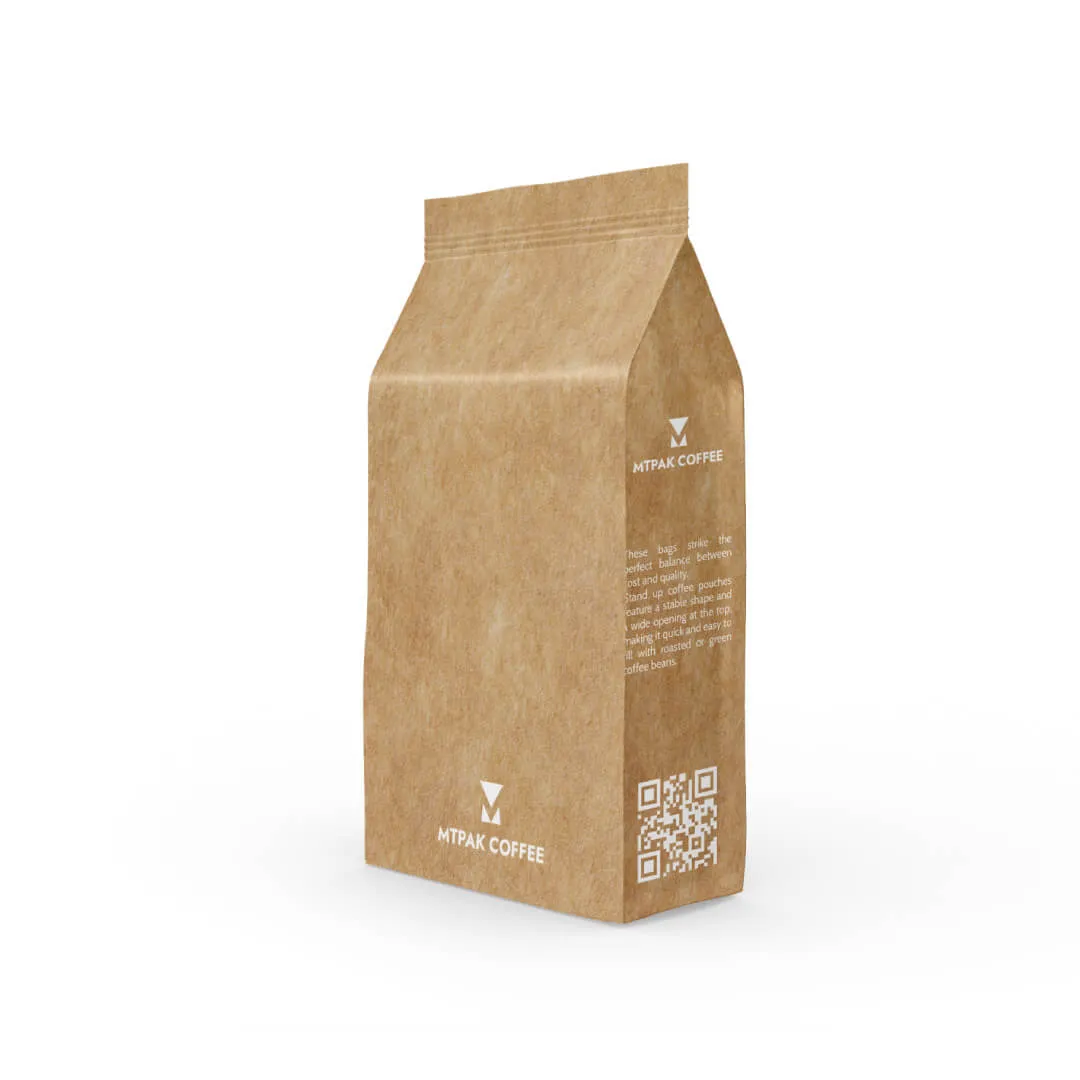 Want a premium, stable presence? This is your go-to. The flat bottom gives these bags a sturdy, high-end look with tons of space for your beautiful design. They offer excellent protection and are a top choice for specialty coffee brands.