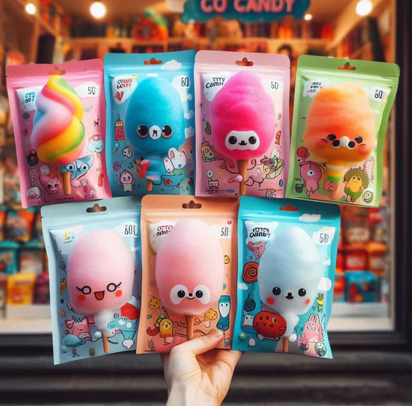 Layered Textures and Textures: Choose packaging that highlights the layers and textures of cotton candies, such as small pouches and ziplock bags. This allows consumers to better appreciate the cotton candy's beauty through the packaging.