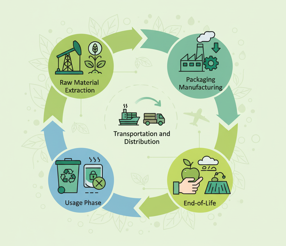 An LCA breaks down the packaging lifecycle into distinct, measurable phases. This structure ensures nothing is missed.
