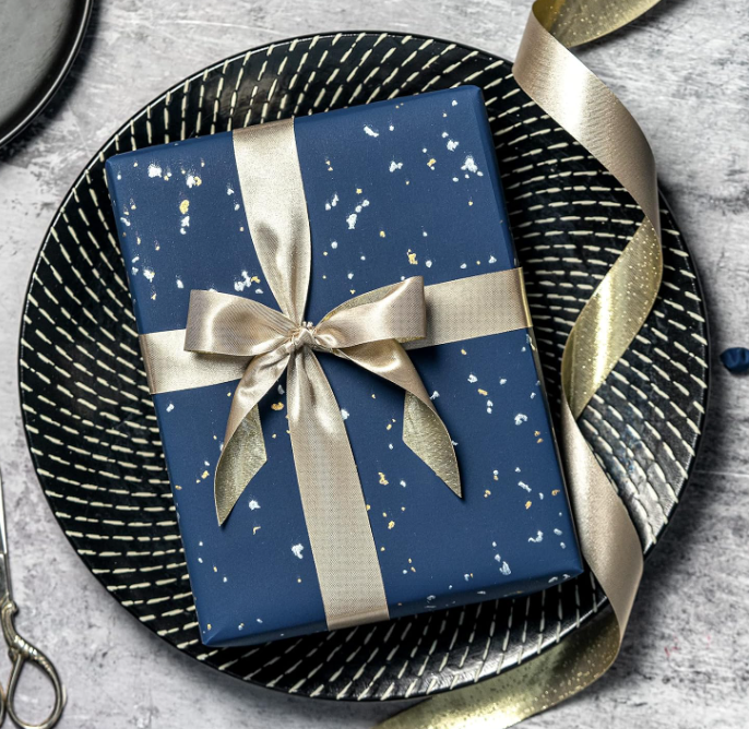 Business gift wrapping paper should be understated, with sophisticated details. Avoid complex patterns.
