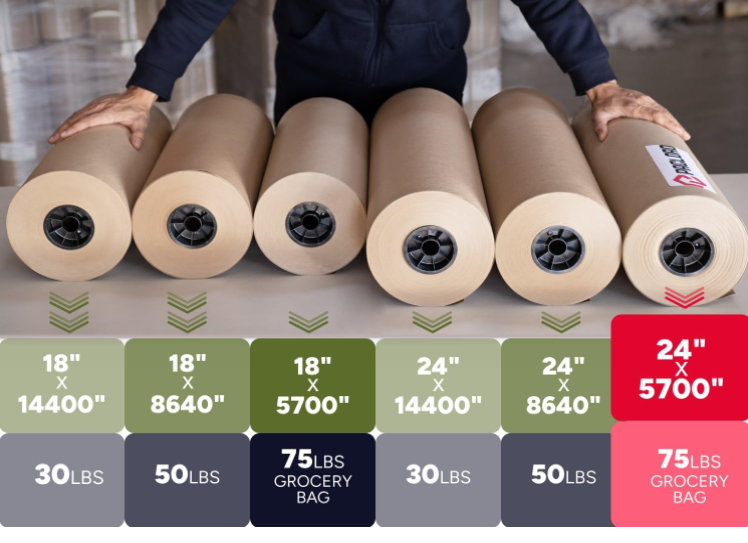 Unbleached, brown, and strong roll paper is commonly used in logistics and industrial applications.