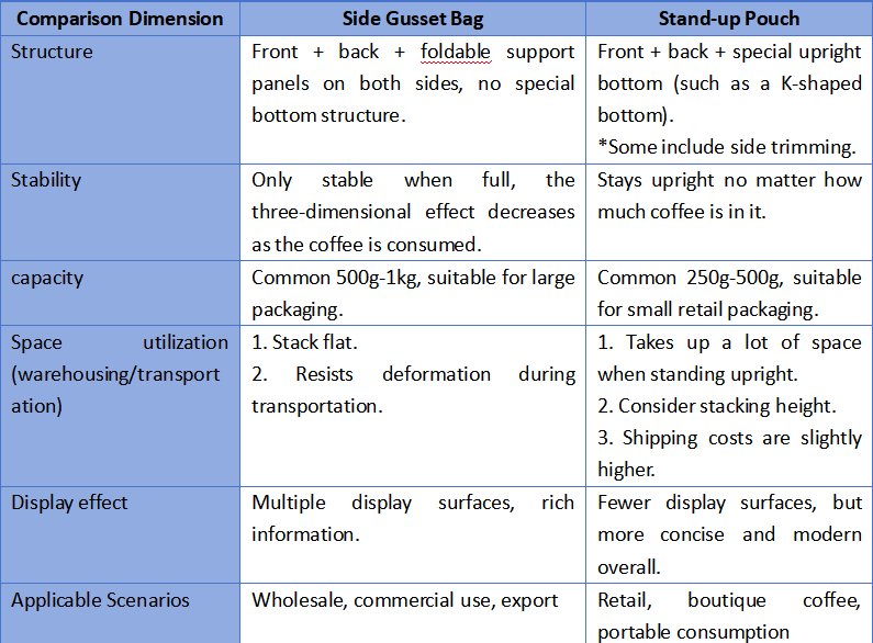 Side Gusset Bag VS. Stand-up Pouches: The Perfect Solution for Coffee Packaging