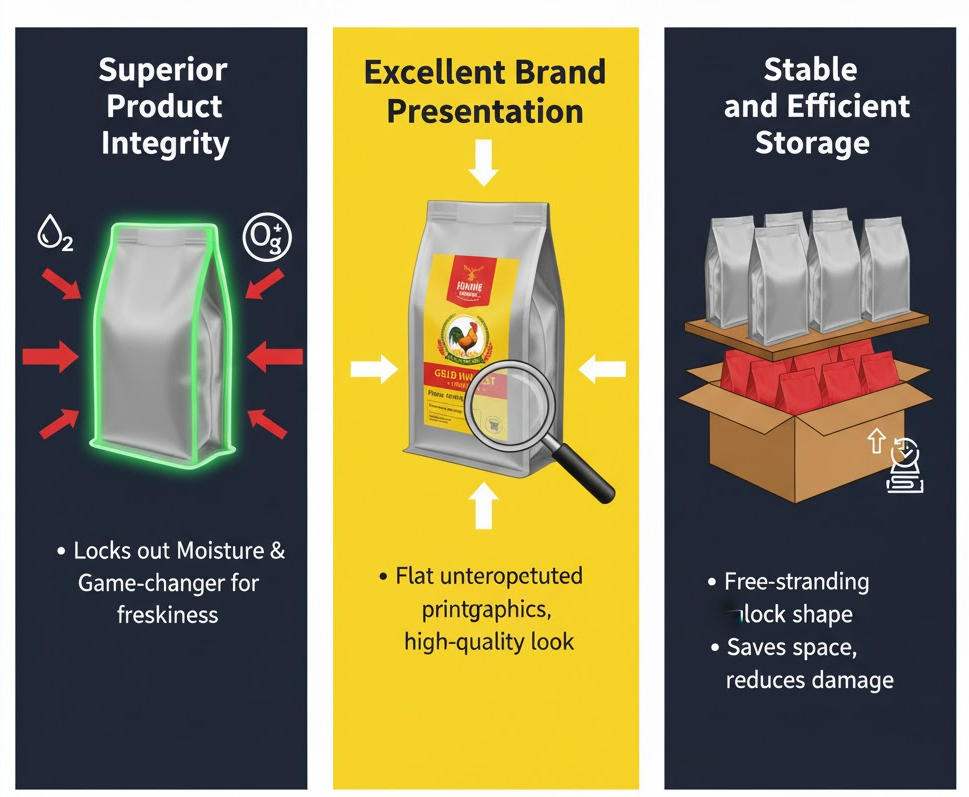 The four sealed edges create a continuous barrier. This locks out moisture, oxygen, and contaminants far more effectively than many other bag styles. For products that degrade when exposed to air or humidity, this is the main line of defense. It’s a game-changer for preserving the freshness of roasted coffee or the shelf life of sensitive supplements.