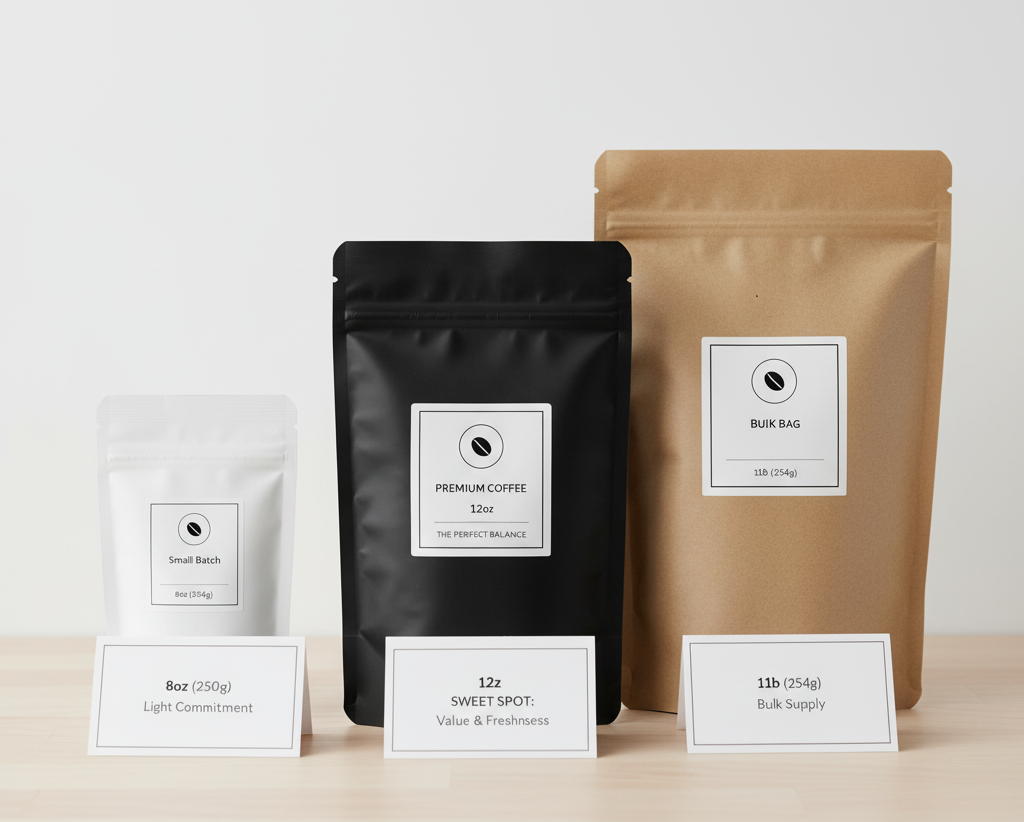 250g Bag | 8.8oz | Perceived as small yet premium; may lack value impression | Cost-effective for microlots; lower unit cost | Limited branding space; challenges premium pricing |
